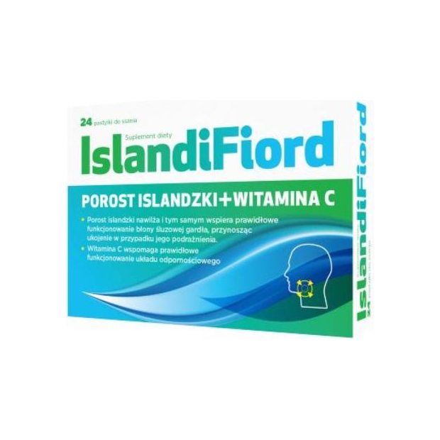 IslandiFiord to suplement diety w formie pastylek do ssania w składzie których zawarto ekstrakt z porostu islandzkiego i witaminę C w formie kwasu L-askorbinowego.